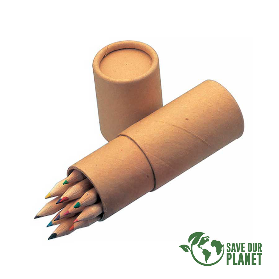Set de 12 Lápices Grafito de Color, en Estuche cilíndrico de Cartón Reciclado.